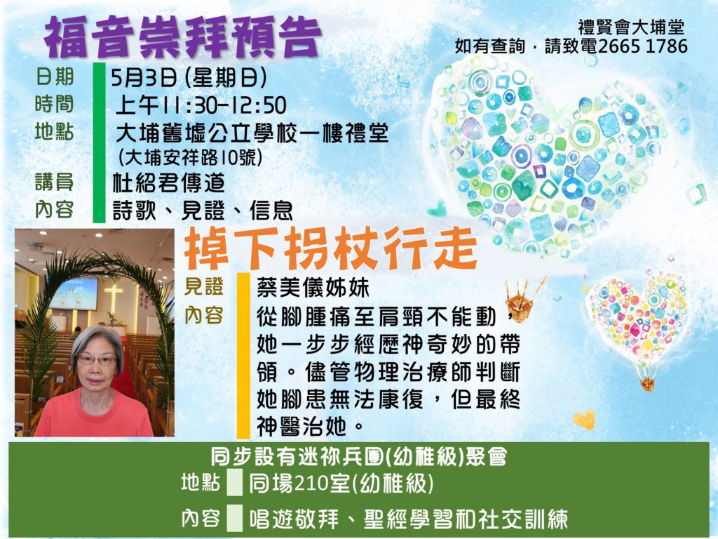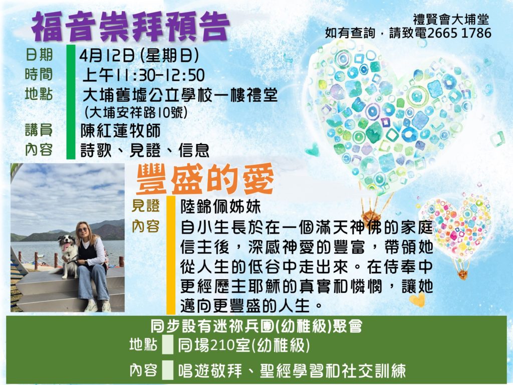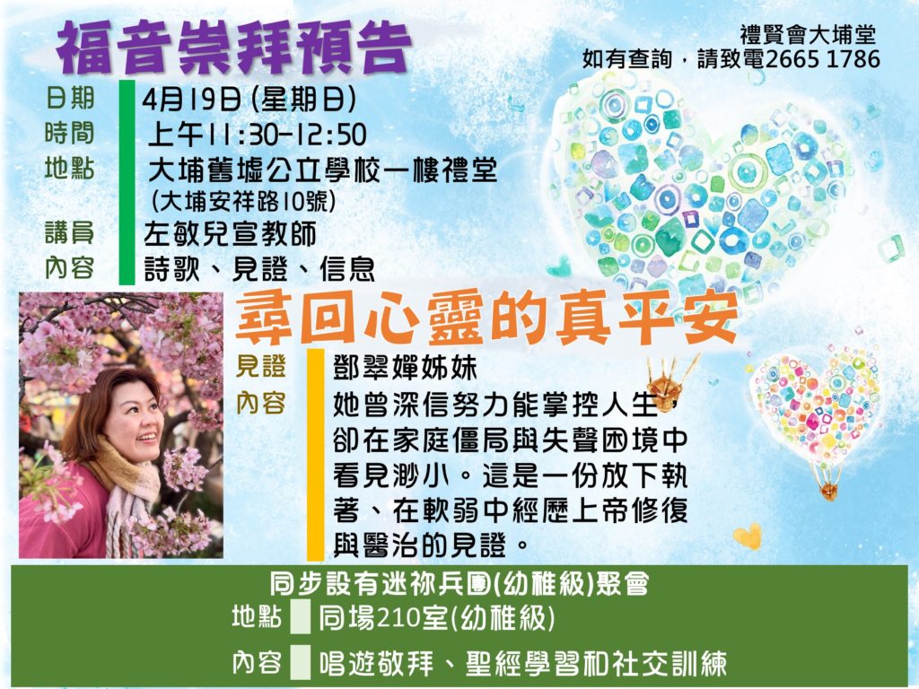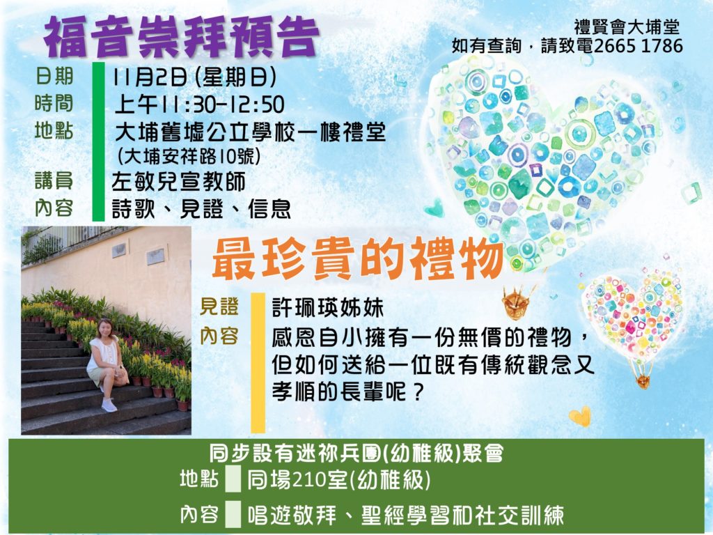 本堂歷史可追溯至1954年,當年的禮賢會香港區會有意在元朗、上水、粉嶺、大埔一帶發展聖工,最後在大埔舊墟汀角路興建教會......